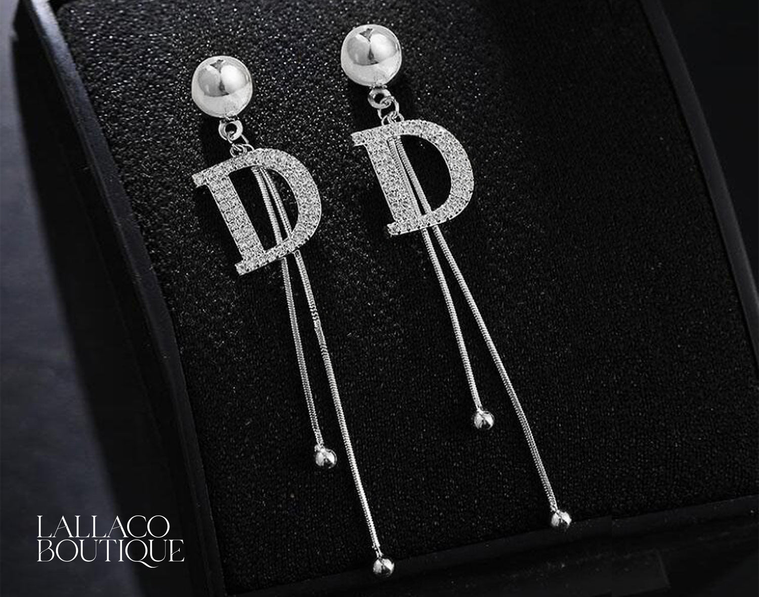 D Letter Silver Drop Chain Earrings